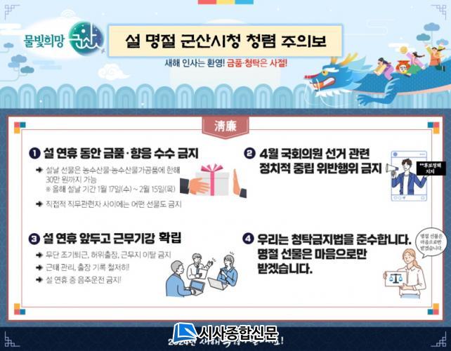 [½Ã»çÁ¾ÇսŹ® = ±è¿¬Èñ ±âÀÚ] ±º»ê½Ã´Â 2¿ù 1ÀϺÎÅÍ 13ÀϱîÁö ¼³ ¸íÀý ÀüÈÄ 13Àϰ£ ¡¸Ã»·Å ÁÖÀǺ¸¡¹¸¦ ¹ß·ÉÇÏ°í °øÁ÷±â° È®¸³¿¡ ³ª¼¹´Ù.