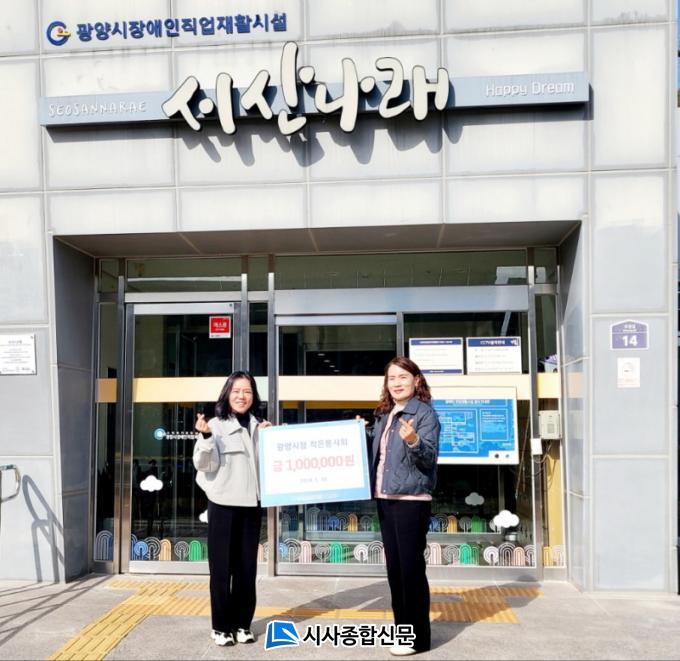 ÀÛÀººÀ»çȸ´Â ±¤¾ç½Ãû °ø¹«¿ø 52¸íÀ¸·Î ±¸¼ºµÈ ´Üü·Î 2006³â °á¼ºµÈ ÀÌÈÄ ¿ù 1ȸ ÀÌ»ó Áö¿ª»çȸ ³» ´Ù¾çÇÑ »çȸ°øÇåȰµ¿À» ÆîÃijª°¡°í ÀÖÀ¸¸ç, À̹ø ÈÄ¿ø±ÝÀº ¿À´Â 3¿ù 5ÀÏ °³Á¡ ¿¹Á¤ÀÎ ¡®µå¸²Ä«Æä ¼ºÈ²½ºÆ÷Ã÷¼¾ÅÍÁ¡¡¯ÀÇ ¾ÈÁ¤ÀûÀÎ ¿î¿µÀ» Áö¿øÇϱâ À§ÇØ ¸¶·ÃµÆ´Ù.