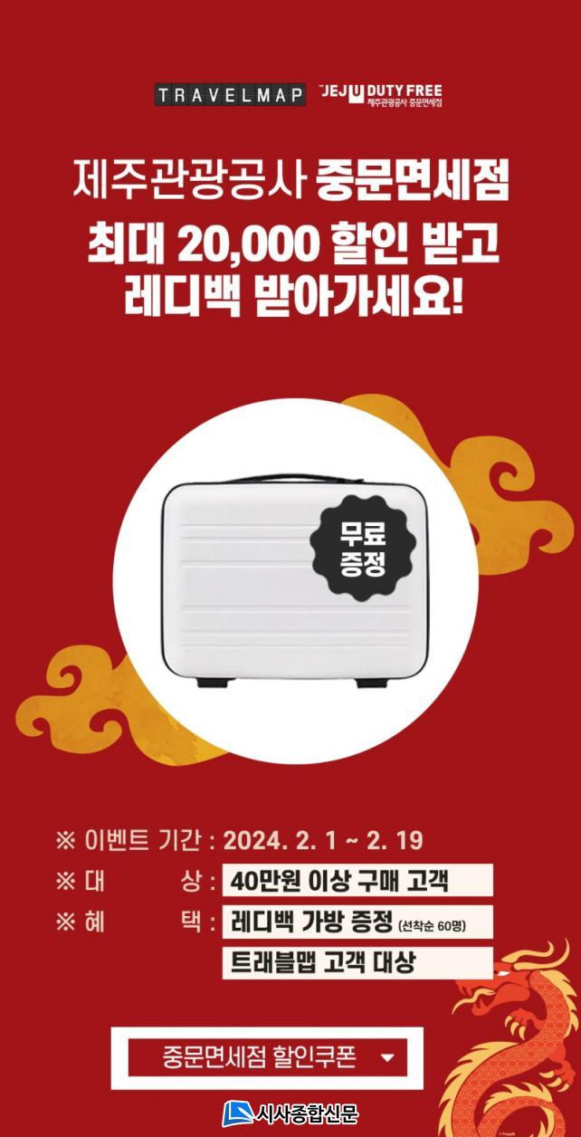 Æ®·¡ºí¸Ê°ú Á¦ÁÖ°ü±¤°ø»ç´Â ÇÁ·Î¸ð¼Ç ±â°£ Áß¹®¸é¼¼Á¡À» ¹æ¹®ÇÏ´Â ¸ðµç ºÐµé¿¡°Ô ÃÖ´ë 2¸¸¿øÀÇ ¸é¼¼Ç° ÇÒÀÎÄíÆùÀ» Á¦°øÇÏ´Â ÇÑÆí, ¹æ¹® ´çÀÏ 40¸¸¿ø ÀÌ»ó ±¸¸ÅÇÑ °í°´¿¡°Ô´Â ÇÑÁ¤ ¼ö·®À¸·Î ÁغñµÈ ·¹µð¹éÀ» ¼±Âø¼øÀ¸·Î ÁõÁ¤ÇÒ °èȹÀÌ´Ù.