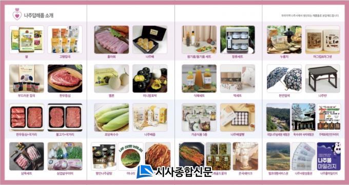 ÇöÀç ³ªÁֽà ´ä·ÊǰÀº ´ëÇ¥ Ư»ê¹°ÀÎ ³ªÁֹ踦 ºñ·ÔÇØ ½Ò¡¤Àâ°î, Çѿ졤µÅÁö°í±â, ¼÷¼ºÈ«¾î¿Í °°Àº ³óÃà»ê¹°°ú ³ªÁÖ°õÅÁ, ¹èÁó, °¢Á¾ Àå·ù, ³ªÁÖ¹è½Ò»§ µî °¡°ø½Äǰ µî ÃÑ 34°³ ǰ¸ñÀ¸·Î ±¸¼ºµÅÀÖ´Ù.