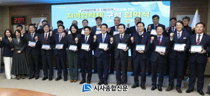 Çù¾à½ÄÀº µµÁö»ç ¹× µµ±³À°°¨ÀÇ °Ý·Á»ç ÈÄ ¼¸í°ú ±â³ä ÃÔ¿µ ¼øÀ¸·Î À̾îÁ³À¸¸ç, ÀÌ ÀÚ¸®¿¡¼ Âü¼®ÀÚµéÀº Àü³²Çü ±³À°¹ßÀüƯ±¸ ½Ã¹üÁö¿ª ¾÷¹«Çù¾àÀ» ÅëÇØ Áö¿ª Çù·Âü¸¦ ±¸¼ºÇÏ°í ±³À°¹ßÀüƯ±¸ ¿î¿µ¡¤°ü¸®¸¦ À§ÇØ ³ë·ÂÇϰڴٴ ÀÇÁö¸¦ ´ÙÁ³´Ù.