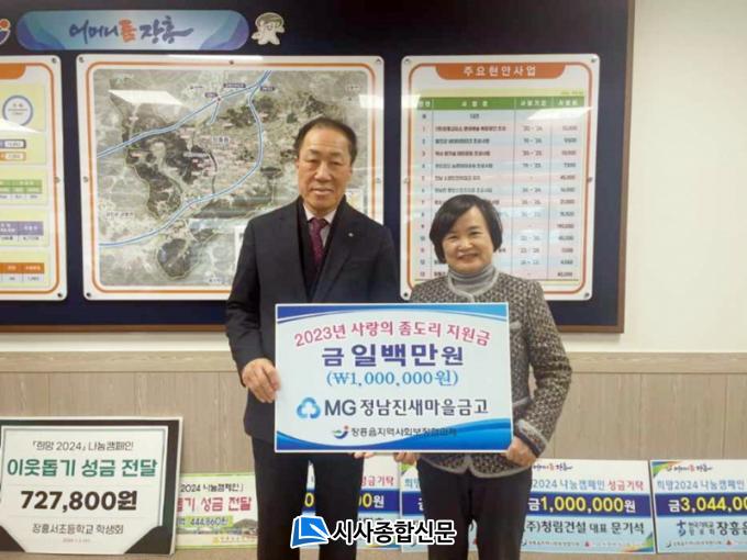 [½Ã»çÁ¾ÇսŹ® = ¿À½ÂÅà ±âÀÚ] ÀåÈﱺ Á¤³²Áø»õ¸¶À»±Ý°í(ÀÌ»çÀå ÇÑ¿ëÇö)´Â 1ÀÏ ÀåÈïÀ¾ÇàÁ¤º¹Áö¼¾Å͸¦ ¹æ¹®ÇØ »ç¶ûÀÇ Á»µµ¸® ¿îµ¿À» ÅëÇØ ¸ð±ÝÇÑ ¼º±Ý 100¸¸¿øÀ» ±âŹÇß´Ù.
