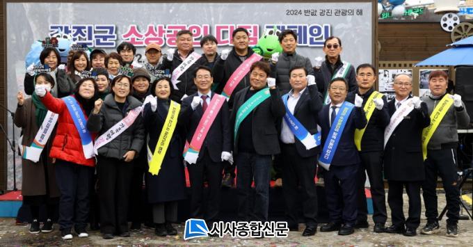 Ä·ÆäÀÎÀº °Áø±º¼Ò»ó°øÀÎȸ, °Áø»ó°¡¹ø¿µÈ¸. °Áø½ÃÀå»óÀÎȸ, ¿Ü½Ä¾÷ÁöºÎ ȸ¿ø µî 100¿© ¸íÀÌ °ÁøÀ¾±ØÀåÅë¿¡ ¸ð¿© ¡®2024 ¹Ý°ª °Áø°ü±¤ÀÇ ÇØ¡¯¸¦ ¼º°øÀûÀ¸·Î À̲ø±â À§ÇØ ¼Ò»ó°øÀÎÀÌ ½ÇÃµÇØ¾ß ÇÒ °úÁ¦¸¦ °¢ »óÀÎȸ ȸÀåµéÀÌ ³ª¿Í ³¶µ¶ÇÏ°í »óÀÎȸ ȸ¿øµéÀº ÇÔ²² ±¸È£¸¦ ¿ÜÄ¡¸ç ÀÇÁö¸¦ ´ÙÁ³´Ù. ÀÌ¾î ¡®Ä£Àý, û°á, Á¤ÂûÁ¦, ¹Ù°¡Áö¿ä±Ý ±ÙÀý¡¯À̶ó°í ¾²ÀÎ ¹Ì´ÏÇö¼ö¸·°ú ¾î±ú¶ì¸¦ ¸Å°í ±ØÀåÅë¿¡¼ °ÁøÅ͹̳αîÁö °¡µÎ Ä·ÆäÀÎÀ» ¹ú¿´´Ù.