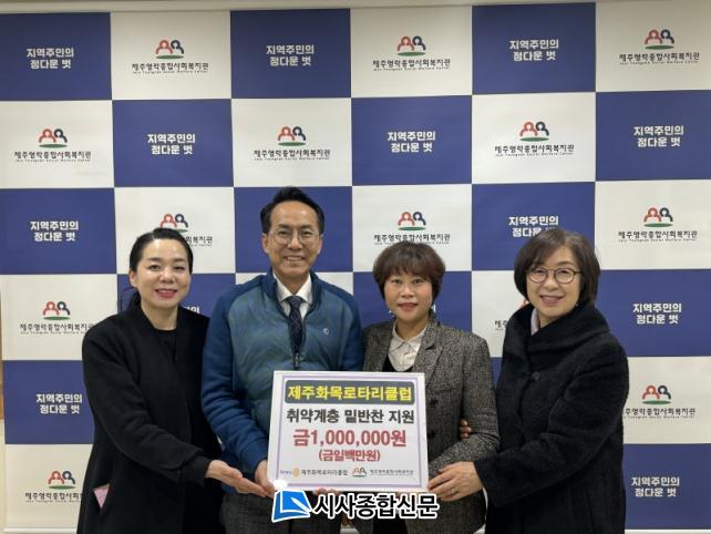 [½Ã»çÁ¾ÇսŹ® = °í¼º¹Î ±âÀÚ] Á¦ÁÖȸñ·ÎŸ¸®Å¬·´(ȸÀå È«À¯°æ)Àº Áö³ 6ÀÏ Á¦ÁÖ¿µ¶ôÁ¾ÇÕ»çȸº¹Áö°ü(°üÀå ÀÌ»ó¾ð)ÀÇ Ãë¾à°èÃþ ¹Ø¹ÝÂùÁö¿ø»ç¾÷À» À§ÇØ 100¸¸¿øÀ» ÈÄ¿øÇÏ¿´´Ù.