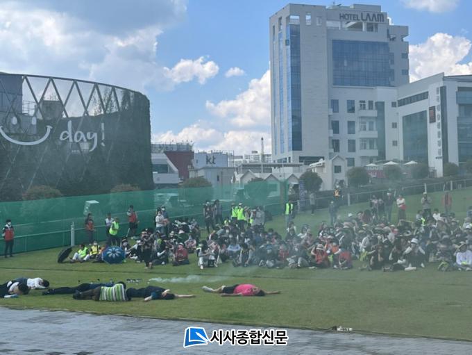 ¾Õ¼ µ¿±¸´Â Áö³ÇØ 6¿ù Àç³´ëÀÀ ¾ÈÀüÇѱ¹ÈÆ·Ã 1ȸÂ÷¿¡ »õ·Ó°Ô µµÀÔµÈ ÈÆ·Ã À¯ÇüÀÎ ¡®°ø¿¬Àå ¾ÈÀü»ç°í ¹× ÀÎÆÄ ¹ÐÁý »ç°í¡¯¸¦ °¡Á¤ÇØ Åä·ÐÈÆ·Ã°ú ÇöÀåÈÆ·ÃÀ» ¿¬°èÇØ ½Ç½ÃÇß´Ù. ÇØ´ç ÈÆ·Ã¿¡´Â 21°³ÀÇ ±â°ü°ú ´Üü°¡ Âü¿©ÇØ À¯°ü ±â°ü°£ Çù·Âü°è¸¦ °ÈÇϰí Áö¿ªÁֹΠ700¿© ¸íÀÌ ´ë±Ô¸ð ÈÆ·Ã¿¡ Âü¿©ÇØ ±¹¹ÎÀÇ ¾ÈÀüÀÇ½Ä Á¦°í¿¡ Èû¾´ Á¡À» ³ôÀÌ Æò°¡¹Þ¾Ò´Ù.