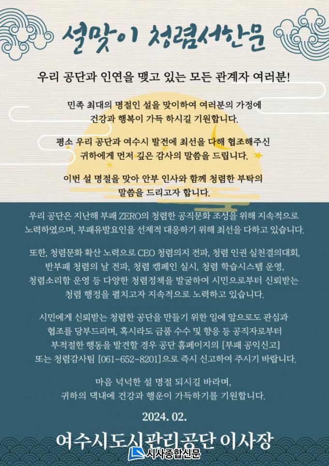 [½Ã»çÁ¾ÇսŹ® = ¿À½ÂÅà ±âÀÚ] ¿©¼ö½Ãµµ½Ã°ü¸®°ø´ÜÀº ¼³¸íÀýÀ» ¸ÂÀÌÇÏ¿© û·Å ½ÇõÀÇÁö¸¦ ´ãÀº û·Å¼Çѹ®À» °ø´Ü ÀÓÁ÷¿ø°ú Á÷¹«°ü·ÃÀÚ¿¡°Ô ¹ß¼ÛÇß´Ù°í 8ÀÏ ¹àÇû´Ù.