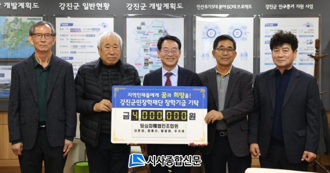 7ÀÏ °Áø±º¿¡ µû¸£¸é Áö³ 6ÀÏ ¶¥½ÉÈÈÑ¿µ³óÁ¶ÇÕ¹ýÀÎ(´ëÇ¥ÀÌ»ç Á¶¿ìö)ÀÌ 200¸¸¿øÀ», °Áؼº, Á¤Á¾¼±, ȲºÀ¿ø, ÁÖ±Í·Ê Á¶ÇÕ¿øÀÌ °¢ 100¸¸¿ø¾¿ 400¸¸¿øÀÇ ÀåÇбÝÀ» °Áø±º¹ÎÀåÇÐÀç´Ü¿¡ ±âŹÇß´Ù.