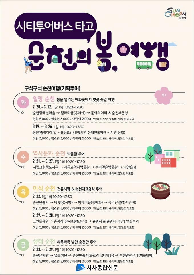 ¼øÃµ½Ã °ü°èÀÚ´Â ¡°¼øÃµÀÇ ÁÖ¿ä °ü±¤Áö»Ó¸¸ ¾Æ´Ï¶ó üÇè, ÃàÁ¦, ¸¶À» µî ¼øÃµ Àü¿ª °÷°÷ÀÇ ´Ù¾çÇÑ °ü±¤ ÄÜÅÙÃ÷¸¦ °æÇèÇÒ ¼ö ÀÖ´Â ÄÚ½º¸¦ ÁغñÇß´Ù¡±¸ç ¡°½ÃƼÅõ¾î¸¸ Ÿ¸é Çѹø¿¡ ¼øÃµÀ» ´Ù¾çÇÏ°Ô ¿©ÇàÇÒ ¼ö ÀÖÀ¸´Ï ¸¹ÀÌ ÀÌ¿ëÇØÁֽñ⠹ٶõ´Ù¡±°í ¸»Çß´Ù.