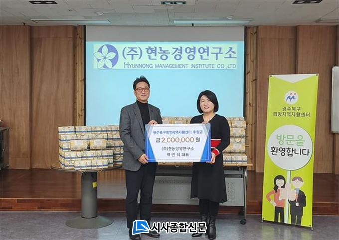 [½Ã»çÁ¾ÇսŹ® = ±è¿¬Èñ ±âÀÚ] ±¤Áֺϱ¸Èñ¸ÁÁö¿ªÀÚȰ¼¾ÅÍ¿¡¼´Â ¸ÂÃãÇü ³ó¾÷ Àü¹® ÄÁ¼³ÆÃ ¹× ±³À°»ç¾÷ ¼öÇà±â°üÀÎ (ÁÖ)Çö³ó°æ¿µ¿¬±¸¼Ò ¹é¹Î¼® ´ëÇ¥·ÎºÎÅÍ ¼³ ¸íÀýÀ» ¸Â¾Æ ±¤Áֺϱ¸Èñ¸Á Áö¿ªÀÚȰ¼¾ÅÍÀÇ ÀÚȰ Âü¿©Áֹε鿡°Ô ¸íÀý ¼±¹° ±¸ÀÔÀ» À§ÇÑ ¸íÀý ÈÄ¿ø±Ý 200¸¸¿øÀ» ±âºÎ ¹Þ¾Ò´Ù.