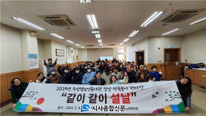 [½Ã»çÁ¾ÇսŹ® = ¿À½ÂÅà ±âÀÚ] »çȸº¹Áö¹ýÀÎ K-water ³ª´®º¹ÁöÀç´Ü(´ëÇ¥ÀÌ»ç ±èÁöÂù)ÀÌ ¿î¿µÇÏ´Â Á־ϴï³ëÀκ¹Áö°ü(°üÀå ¹®ÀÀ¿¬)Àº ¹ÎÁ· ÃÖ´ëÀÇ ¸íÀý ¼³À» ¸Â¾Æ º¹Áö°ü ¾î¸£½Åµé°ú ÇÔ²² Áñ°Å¿î ½Ã°£À» º¸³»°íÀÚ ¼³³¯ ¹Î¼Ó³îÀÌ ÇѸ¶´ç ¡°°°ÀÌ °°ÀÌ ¼³³¯¡± Çà»ç¸¦ ÁøÇàÇß´Ù.