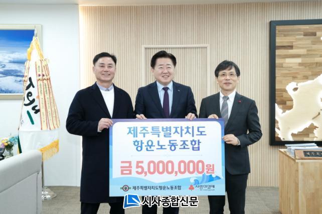 Á¦ÁÖÆ¯º°ÀÚÄ¡µµ´Â Á¦ÁÖµµ Ç׿î³ëµ¿Á¶ÇÕÀÌ 8ÀÏ ¿ÀÀü 9½Ã 40ºÐ µµÁö»ç Áý¹«½Ç¿¡¼ µµ³» Ãë¾à°èÃþÀ» À§ÇÑ ¼º±Ý(500¸¸ ¿ø)À» Á¦ÁÖ»çȸº¹Áö°øµ¿¸ð±Ýȸ¿¡ Àü´ÞÇß´Ù°í ¹àÇû´Ù.