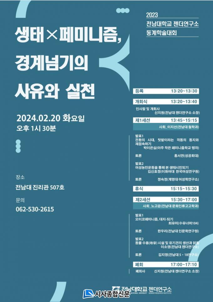 [½Ã»çÁ¾ÇսŹ® = ¿À½ÂÅà ±âÀÚ] Àü³²´ëÇб³ Á¨´õ¿¬±¸¼Ò(¼ÒÀå ½ÅÁö¿ø)´Â ¿À´Â 20ÀÏ ¿ÀÈÄ 1½Ã 30ºÐºÎÅÍ 5½Ã±îÁö Çг» Áø¸®°ü¿¡¼ ¡®»ýÅ¡¿Æä¹Ì´ÏÁò, °æ°è ³Ñ±âÀÇ »çÀ¯¿Í ½Çõ¡¯À» ÁÖÁ¦·Î ÇÑ Çмú´ëȸ¸¦ °®°í, »ýÅ À§±â¸¦ ¸Â°í ÀÖ´Â Çö ½Ã´ë¿¡ ¿ä±¸µÇ´Â ÀüȯÀû »çÀ¯¿Í, ÀÌ¿¡ ´ëÇÑ ½ÇõÀ» ¸ð»öÇÏ´Â ¿©¼ºÁÖÀÇÀÇ È帧À» ¼ºÂûÇÑ´Ù.