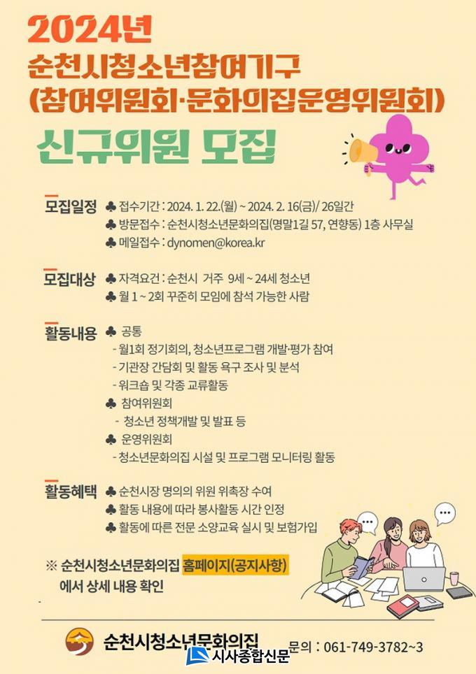 ¸ðÁýÀοøÀº ¼øÃµ½Ã û¼Ò³âÂü¿©À§¿øÈ¸ 20¸í, û¼Ò³â¹®ÈÀÇÁý û¼Ò³â¿î¿µÀ§¿øÈ¸ 15¸íÀ̸ç, ¼øÃµ½Ã¿¡ °ÅÁÖÇÏ´Â ¸¸ 9¼¼ ~ 24¼¼ û¼Ò³âÀÌ¸é ´©±¸³ª Áö¿øÇÒ ¼ö ÀÖ´Ù.