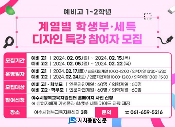 ¿©¼ö½ÃÇູ±³À°Áö¿ø¼¾ÅÍ¿¡¼ ¡ã2¿ù 17ÀÏ(Åä) ¿ÀÀü ¿¹ºñ °í1 Àι®․ÀÚ¿¬°è¿ ¡ã2¿ù 17ÀÏ(Åä) ¿ÀÈÄ ¿¹ºñ °í1 ÀÇÇÐ°è¿ ¡ã2¿ù 24ÀÏ(Åä) ¿ÀÀü ¿¹ºñ °í2 Àι®․ÀÚ¿¬°è¿ ¡ã2¿ù 24ÀÏ(Åä) ¿ÀÈÄ ¿¹ºñ °í2 ÀÇÇÐ°è¿ ´ë»óÀ¸·Î ÁøÇàµÈ´Ù.