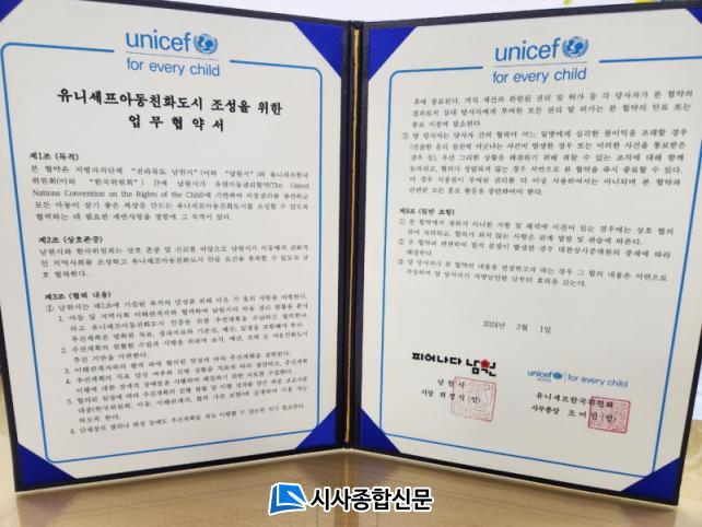 [½Ã»çÁ¾ÇսŹ® = ±è¿¬Èñ ±âÀÚ] ³²¿ø½Ã(½ÃÀå ÃÖ°æ½Ä)´Â Áö³ 2¿ù 1ÀÏ, À¯´Ï¼¼ÇÁÇѱ¹À§¿øÈ¸(»ç¹«ÃÑÀå Á¶¹ÌÁø)¿Í ¾Æµ¿Ä£Èµµ½Ã Á¶¼ºÀ» À§ÇÑ ¾÷¹«Çù¾àÀ» ü°áÇß´Ù.