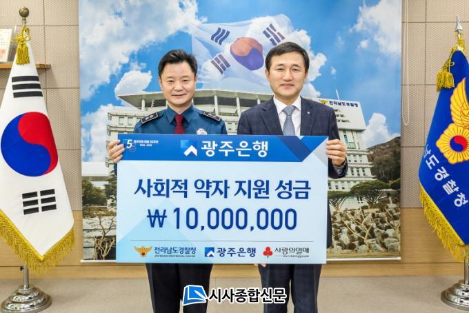 | ±¤ÁÖÀºÇà, Àü³²°æÂûû°ú »çȸÀû¾àÀÚ Áö¿ø¼º±Ý Àü´Þ ¹× ¹èȸ°¨Áö±â º¸±Þ»ç¾÷ Çù¾à ü°á Àü³²Áö¿ª »çȸÀû¾àÀÚ ¹× ¹üÁË ÇÇÇØÀÚ À§ÇØ 1õ¸¸¿ø ¼º±Ý Àü´Þ