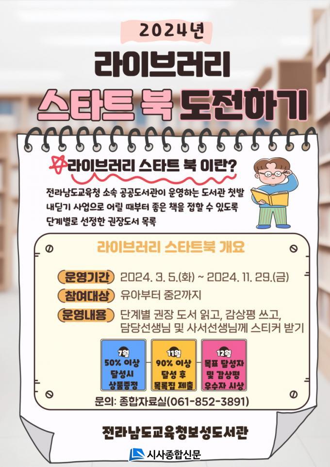 À̹ø¿¡ ÁøÇàµÇ´Â¡®2024³â ¶óÀ̺귯¸® ½ºÅ¸Æ® ºÏ¡¯Àº 2023³â¿¡¼ 2024³â±îÁö Àû¿ëµÇ´Â Á¦7Â÷ ¶óÀ̺귯¸® ½ºÅ¸Æ® ºÏ ¸ñ·ÏÁýÀ¸·Î ¿î¿µµÈ´Ù. ¶óÀ̺귯¸® ½ºÅ¸Æ® ºÏÀº Àü¶ó³²µµ±³À°Ã» ¼Ò¼Ó °ø°øµµ¼°ü »ç¼¿Í Çб³µµ¼°ü »ç¼±³»çµéÀÌ Á÷Á¢ ¼±Á¤ÇÑ ´Ü°èº° ±ÇÀåµµ¼ ¸ñ·ÏÀ¸·Î ¿¬·É¿¡ µû¶ó 1´Ü°è(À¯¾Æ, ÃÊ1~2Çгâ), 2´Ü°è(ÃÊ3~4Çгâ), 3´Ü°è(ÃÊ5~6Çгâ), 4´Ü°è(Áß1~2Çгâ)·Î ±¸¼ºµÇ¾î ÀÖ´Ù.