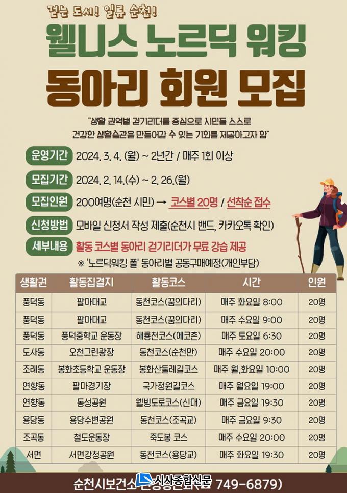 À£´Ï½º ³ë¸£µñ ¿öÅ· µ¿¾Æ¸®´Â 3¿ù 4ÀϺÎÅÍ ¸ÅÁÖ 1ȸ ÀÌ»ó »ýȰÅÍ °¡±î¿î ±¤Àå¿¡ ¸ð¿© ½ºÆ®·¹Äª Çϱâ, 2kmÀÌ»ó À£´Ï½º ³ë¸£µñ ¿öÅ·, °Ç°Á¤º¸ °øÀ¯ Ȱµ¿À» ÇÏ°Ô µÇ¸ç °È±â ¸®´õ 2¸íÀÌ ¿Ã¹Ù¸¥ °È±â, ³ë¸£µñ¿öÅ· ½ºÅÜ µî ¹«·á ±³À°À» Áö¿øÇÑ´Ù.