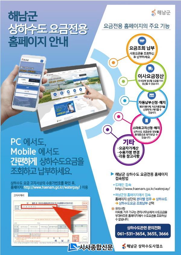 ÇØ³²±º »óÇϼöµµ¿ä±Ý Á¶È¸¡¤³³ºÎ »çÀ̹öⱸ¿¡¼´Â ¼ö¿ë°¡ÀÇ ÁÖ¼Ò¸¦ ÀÔ·ÂÇϸé, ÄÄÇ»Åͳª ½º¸¶Æ®ÆùÀ¸·Î °£ÆíÇÏ°Ô ¼öµµ ¿ä±ÝÀ» Á¶È¸ÇÏ°í ³³ºÎÇÒ ¼ö ÀÖ´Ù. ƯÈ÷ ¹æ¹® ¶Ç´Â ÀüÈ Åëȷθ¸ °¡´ÉÇß´ø ÀÌ»çÁ¤»ê, Ä«µå³³ºÎ, ÀÚµ¿ÀÌü ½Åû µî ¾÷¹« 󸮰¡ ȨÆäÀÌÁö¿¡¼µµ °¡´ÉÇÏ°Ô µÇ¾î ¹ø°Å·Î¿òÀ» ´ú ¼ö ÀÖ°Ô µÆ´Ù.