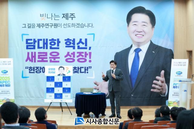 ¿À¿µÈÆ Á¦ÁÖµµÁö»ç´Â À̳¯ ¿ÀÀü 10½Ã Á¦ÁÖ¿¬±¸¿øÀÇ ´Ù¾çÇÑ Á¤Ã¥ºÐ¾ß¸¦ ¹ß±¼ÇÏ´Â ¿¬±¸ ¾÷¹« À§Å¹¼¾ÅÍ µî ½Ã¼³ ÇöȲÀ» »ìÆìº¸°í °ü°èÀÚµéÀÇ ³ë°í¸¦ °Ý·ÁÇß´Ù.