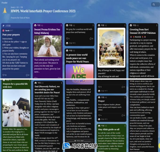 ±âµµÈ¸°¡ ÁøÇàµÇ´Â µ¿¾È¿¡´Â ½Ç½Ã°£À¸·Î ÆòÈÀÇ ¿°¿øÀ» ´ãÀº ±âµµ¿Í ¼Ò¿øÀÇ °Ô½ÃÆÇÀ» ¿î¿µÇÏ¿´´Ù. Âü¿©ÀÚµéÀº °øÀ¯µÈ ¸µÅ©¸¦ ÅëÇØ Æòȸ¦ À§ÇÑ ±âµµ¿Í ¿°¿øÀÇ ³»¿ëÀ» ÀÚÀ¯·Ó°Ô Àû¾î °øÀ¯ÇÏ¿´´Ù. °Ô½ÃÆÇ¿¡ ¿Ã·ÁÁø ±ÛµéÀº ÇâÈÄ Çѵ¥ ¸ð¾Æ¼ ¾ó¸¶³ª ¸¹Àº »ç¶÷µéÀÌ ÀüÀïÀ» ¸ØÃß°í Æòȸ¦ ÀÌ·ç±æ ¿øÇÏ´ÂÁö º¸´Ù ¸¹Àº »ç¶÷µé¿¡°Ô °øÀ¯ÇÏ°í ¸¶À½À» ¸ðÀ¸´Â µ¥¿¡ »ç¿ëÇÒ ¿¹Á¤ÀÌ´Ù.