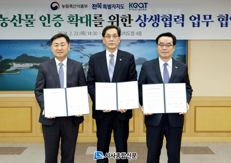 ÀüºÏƯº°ÀÚÄ¡µµ´Â 22ÀÏ µµÃ» ȸÀǽǿ¡¼ ±è°ü¿µ µµÁö»ç¿Í ³ó¸²Ãà»ê½ÄǰºÎ ÇÑÈÆ Â÷°ü, Çѱ¹³ó¾÷±â¼úÁøÈï¿ø ¾ÈÈ£±Ù ¿øÀåÀÌ Âü¼®ÇÑ °¡¿îµ¥ 3°³ ±â°üÀÌ Àúź¼Ò ³ó»ê¹° ÀÎÁõ È®´ë¸¦ À§ÇÑ »ó»ýÇù·Â ¾÷¹«Çù¾àÀ» Ư¡¤±¤¿ª½Ã Áß ÃÖÃʷΠü°áÇß´Ù°í ¹àÇû´Ù.