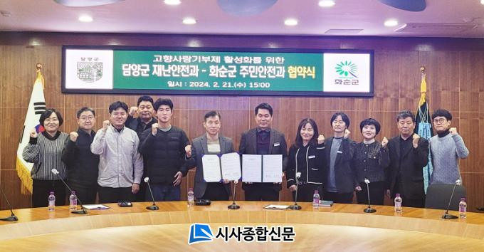 [½Ã»çÁ¾ÇսŹ® = ¿À½ÂÅà ±âÀÚ] ´ã¾ç±º Àç³¾ÈÀü°ú¿Í ȼø±º ÁֹξÈÀü°ú°¡ Áö³ 21ÀÏ È¼ø±ºÃ»¿¡¼ ¡®°íÇâ»ç¶û±âºÎÁ¦ »óÈ£±âºÎ¸¦ À§ÇÑ Çù¾à½Ä¡¯À» ¿°í, ¼·ÎÀÇ Áö¿ª¹ßÀüÀ» ÀÀ¿øÇϸç, ¸Å³â °íÇâ»ç¶û±âºÎÁ¦ »óÈ£±âºÎ¿¡ µ¿ÂüÇϱâ·Î Çß´Ù.