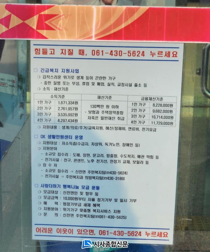 ½ÅÀü¸éÀº ¸¶À»º° °æ·Î´ç, ½ÅÀüº¹Áöȸ°ü, ½ÅÀü°øÁ߸ñ¿åÀå, ½ÅÀü³óÇù, ½ÅÀü¿ìü±¹ µî ¸é¹ÎµéÀÌ ÀÚÁÖ ÀÌ¿ëÇÏ´Â °ø°£¿¡ ¡®Èûµé°í ÁöÄ¥ ¶§ 061-430-5624 ´©¸£¼¼¿ä¡¯, ¡®¾î·Á¿î ÀÌ¿ôÀÌ ÀÖÀ¸¸é 061-430-5624 ´©¸£¼¼¿ä¡¯ °ü·Ã È«º¸ Æ÷½ºÅ͸¦ ºÎÂøÇØ ´©±¸µç ¸éÀ» ã¾Æ µµ¿òÀ» ¹ÞÀ» ¼ö ÀÖµµ·Ï ³Î¸® ¾Ë¸®°í ÀÖ´Ù.