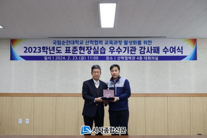 [½Ã»çÁ¾ÇսŹ® = Àå¹Î±Ô ±âÀÚ] ±¹¸³¼øÃµ´ëÇб³(ÃÑÀå À̺´¿î)´Â 2023Çг⵵ Ç¥ÁØ ÇöÀå½Ç½À ±³À°°úÁ¤¿¡ Àû±Ø Âü¿©ÇØ ÁØ ¿ì¼ö±â¾÷À¸·Î ¢ßÆ÷½ºÄÚÀ̾ؾ¾¸¦ ¼±Á¤Çϰí, °¨»çÆÐ¸¦ Àü´ÞÇß´Ù°í ¹àÇû´Ù.