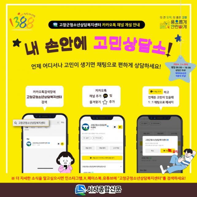 ¡®³» ¼Õ¾È¿¡ °í¹Î»ó´ã¼Ò¡¯ īī¿ÀÅå ä³Î ¡®°íⱺû¼Ò³â»ó´ãº¹Áö¼¾ÅÍ¡¯´Â ÆòÀÏ ¿ÀÀü 9½ÃºÎÅÍ ¿ÀÈÄ 6½Ã±îÁö ¿î¿µµÈ´Ù. û¼Ò³â Àü¹®»ó´ã»ç 5¸íÀÌ ¿äÀÏÀ» ÁöÁ¤ÇØ Ã»¼Ò³âÀÇ ÀÏ»óÀûÀÎ °í¹ÎºÎÅÍ °¡Ãâ, Çо÷Áß´Ü, ÀÎÅÍ³Ý Áßµ¶ µîÀÇ ½ÉÃþÀûÀÎ ¹®Á¦±îÁö·Î ¸¶À½À» ¿°í ´ëȸ¦ ³ª´«´Ù.