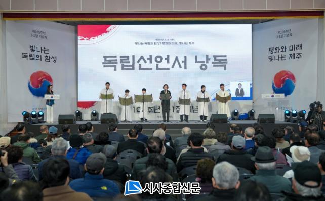 À̳¯ ±â³ä½Ä¿¡¼´Â ±¹¾Ç¿¬Èñ´Ü Çϳª¾ÆÆ®ÀÇ ½ÄÀü ÃàÇϰø¿¬ÀÎ ¡®ºû³ª´Â µ¶¸³ÀÇ ÇÔ¼º¡¯ ´ëºÏ °ø¿¬À» ½ÃÀÛÀ¸·Î Á¦ÁÖ À¯ÀÏÀÇ »ýÁ¸ ¾Ö±¹Áö»çÀÎ °Å¼± Áö»çÀÇ ÀÎÅÍºä ¿µ»ó »ó¿µ°ú °Å¼± Áö»çÀÇ ¾ÆµéÀÎ °´ë¼º ¾¾°¡ °Å¼± Áö»çÀÇ ¾÷ÀûÀ» ¼Ò°³Çß´Ù.ÀÌ¾î¼ µµ¹Î Âü¿©ÀÚ¿Í µ¶¸³À¯°øÀÚ ÈļյéÀÇ ¸±·¹ÀÌ µ¶¸³¼±¾ð¹® ³¶µ¶, 3¡¤1Àý ±â³ä¿µ»ó »ó¿µ, À¯°øÀÚ Ç¥Ã¢(¿ÂÆò¸® ÇØ³àȸ), ±â³ä»ç, Á¦ÁÖµµ¸³ÇÕâ´ÜÀÇ ±â³ä°ø¿¬, 3¡¤1Àý ³ë·¡ Á¦Ã¢, ¸¸¼¼»ïâ ¼øÀ¸·Î ÁøÇàµÆ´Ù.