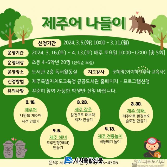 | ¼±ÍÆ÷µµ¼°ü, ¡®2024³â Á¦ÁÖ¾î ³ªµéÀÌ¡¯ Âü°¡ÀÚ ¸ðÁý |