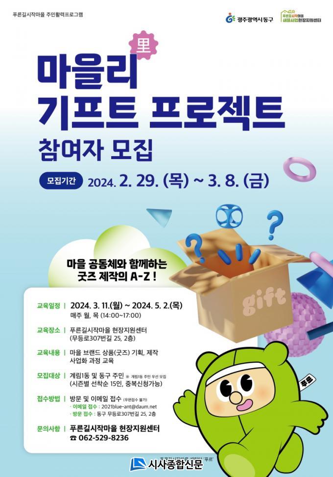 Âü¿©¸¦ ¿øÇÏ´Â ÁÖ¹ÎÀº µ¿±¸Ã» ´©¸®Áý¿¡¼ Âü°¡½Åû¼¸¦ ³»·Á¹Þ¾Æ À̸ÞÀÏ(2021blue-ant@daum.net) ¶Ç´Â Ǫ¸¥±æ½ÃÀÛ¸¶À» ÇöÀåÁö¿ø¼¾ÅÍ(¢Ï062-529-8235)·Î ¹æ¹® Á¢¼öÇÏ¸é µÈ´Ù.
