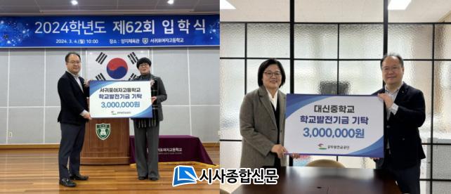 [½Ã»çÁ¾ÇսŹ® = °í¼º¹Î ±âÀÚ] °ø¹«¿ø¿¬±Ý°ø´Ü(ÀÌ»çÀå ±èµ¿±Ø)Àº 4ÀÏ Áö¿ª»çȸ ±³À°È¯°æ °³¼±°ú ¹Ì·¡¼¼´ëÀÇ ¼ºÀå Áö¿øÀ» À§ÇØ ¼±ÍÆ÷¿©ÀÚ°íµîÇб³¿Í ¼±ÍÆ÷´ë½ÅÁßÇб³¿¡ ÀåÇÐ±Ý 600¸¸¿øÀ» ±âŹÇÏ¿´´Ù°í ¹àÇû´Ù.