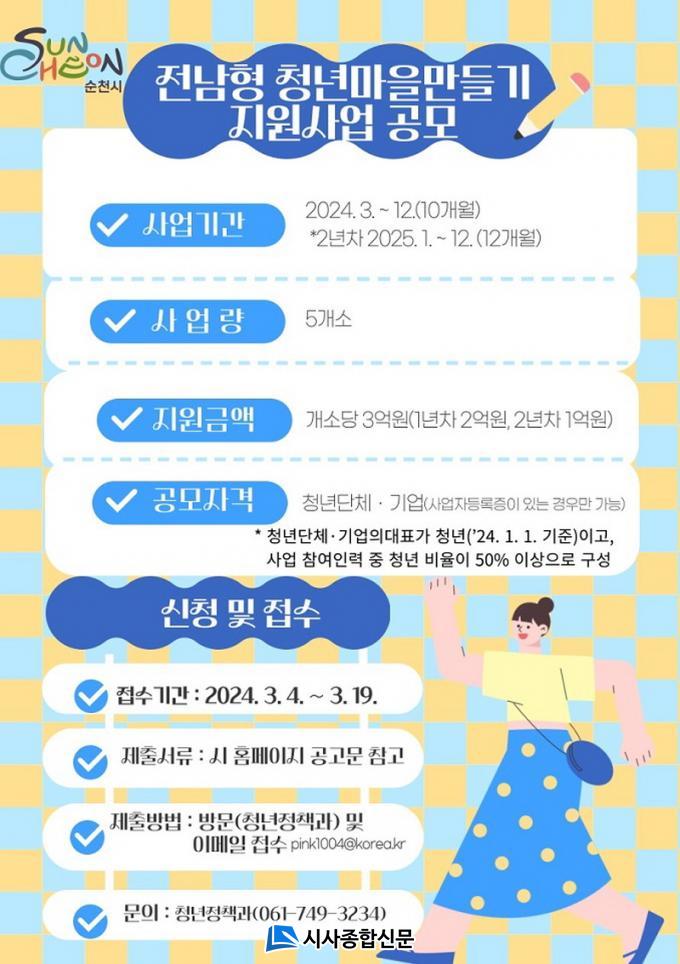 û³â¸¶À» ¸¸µé±â »ç¾÷¿¡ °ü½É Àִ û³â´Üü¡¤±â¾÷Àº ½Ã ȨÆäÀÌÁö¿¡ °Ô½ÃµÈ °ø°í¹®À» Âü°íÇÏ¿© ¿À´Â 19ÀϱîÁö ¼øÃµ½Ã û³âÁ¤Ã¥°ú·Î »ç¾÷°èȹ¼¸¦ Á¦ÃâÇÏ¸é µÈ´Ù.