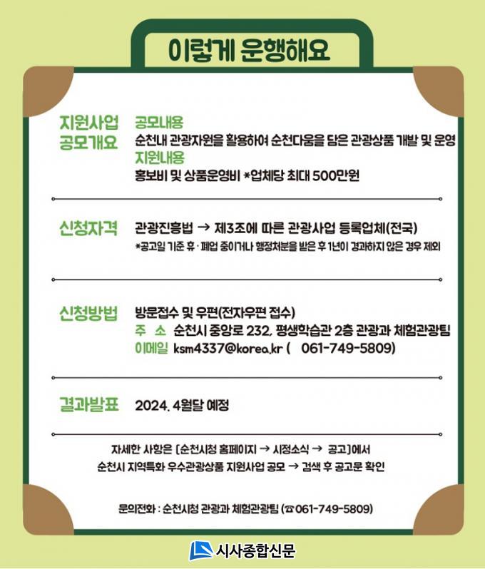 À̹ø °ø¸ð»ç¾÷Àº ¼øÃµ °ü±¤ÀÇ Âü½ÅÇÑ À̹ÌÁö ±¸Ãà°ú »õ·Î¿î º¯È¸¦ À̲ø¾î ³»±â À§ÇÑ »ç¾÷ÀÌ´Ù.