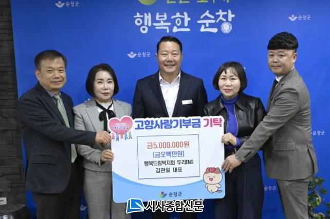 [½Ã»çÁ¾ÇսŹ® = ±è¿¬Èñ ±âÀÚ] ¼øÃ¢±ºÀº 6ÀÏ Çູµå¸²º¹ÁöȸµÎ¸®E.N.G ±è°üÀÏ ´ëÇ¥°¡ °íÇâ»ç¶û±âºÎ±Ý °³ÀÎ ÃÖ°í Çѵµ¾×ÀÎ 500¸¸¿øÀ» ±âŹÇß´Ù°í ¹àÇû´Ù.