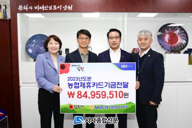 [½Ã»çÁ¾ÇսŹ® = ±è¿¬Èñ ±âÀÚ] NH³óÇù ³²¿ø½ÃÁöºÎ´Â Áö³ 5ÀÏ 2023³âµµ ÇÑ ÇØ µ¿¾È »ç¿ëÇÑ ³²¿ø½Ãû Á¦ÈÞÄ«µå Àû¸³±Ý 8,500¿©¸¸¿øÀ» ³²¿ø½Ã¿¡ Àü´ÞÇÏ¿´´Ù.