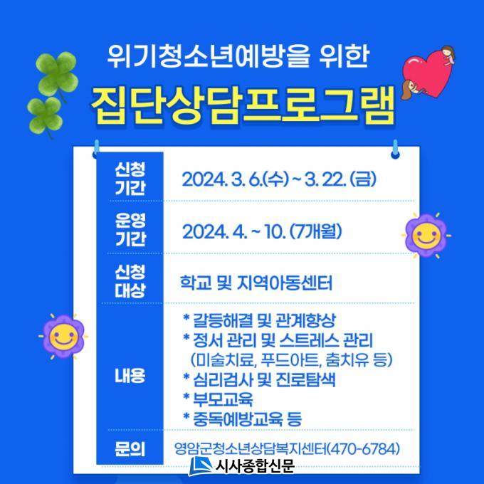 [½Ã»çÁ¾ÇսŹ® = ¿À½ÂÅà ±âÀÚ] ¿µ¾Ï±ºÃ»¼Ò³â»ó´ãº¹Áö¼¾ÅͰ¡ 4~10¿ù À§±â û¼Ò³â ¿¹¹æ Áý´Ü»ó´ãÇÁ·Î±×·¥À» ¿î¿µÇÑ´Ù.