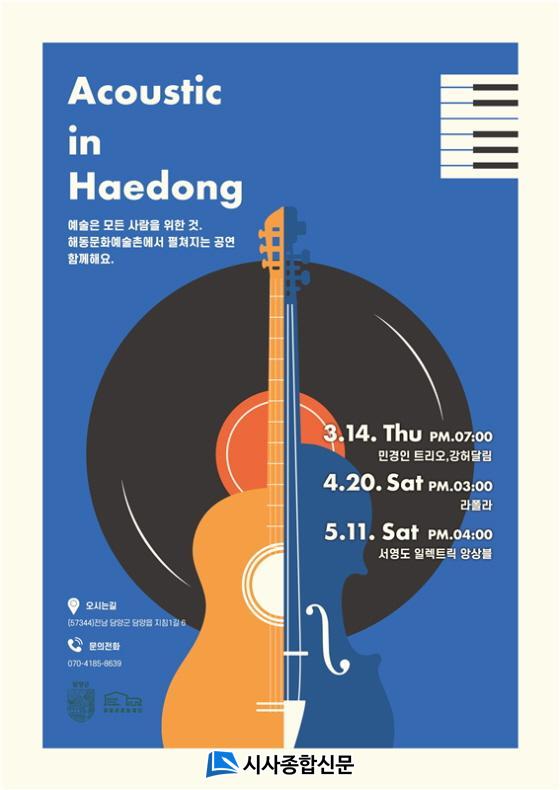 ù ¹øÂ° °ø¿¬Àº ´ëÁßÀ½¾Ç °ø¿¬À¸·Î 3¿ù 14ÀÏ ¸ñ¿äÀÏ ¿ÀÈÄ 7½Ã ÇØµ¿¹®È¿¹¼úÃÌ ¿À»öµ¿¿¡¼ ¿¸®¸ç ÇǾƴϽºÆ® ¹Î°æÀΰú °¡¼ö °Çã´Þ¸²ÀÌ ÇÔ²² ¹«´ë¸¦ ÁغñÇÑ´Ù.