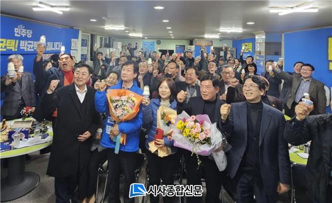 | ¹Ú±ÕÅà ±¤ÁÖ ±¤»ê °© ±¹È¸ÀÇ¿ø Èĺ¸(¹ÎÁÖ´ç ÀÌÀç¸í ´ëÇ¥ ¹ý·üƯº¸)°¡ 6ÀÏ ¹ã ¼±°Å»ç¹«¼Ò¿¡¼ ÁöÁöÀÚµé°ú ÇÔ²² °æ¼± °á°ú ¹ßÇ¥ Á߰踦 ½ÃûÇß´Ù.