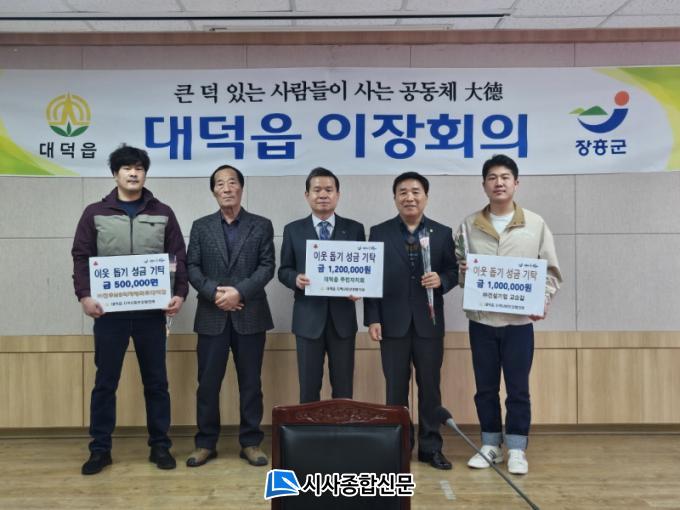 ´ë´öÀ¾¿¡ µû¸£¸é ž»ê»ç ÁÖÁö½º´ÔÀÌ 200¸¸¿ø, ´ë´öÀ¾ÁÖ¹ÎÀÚġȸ(¼Õ½ÂÇö)¿¡¼ 120¸¸¿ø, ´öÀϽĴç, ȸº¹ÀDZ³È¸, ÇѸ¶À½±³È¸, »êÁ¤¸¶À» ÀÌÀå(¹Ú¼øÇÊ), (ÁÖ)°Ç¼³±â¾÷(°í½Â±æ), ±Ý°½ºÆ¿(À§ÀºÈñ) °¢ 100¸¸¿ø, ³ª´©¸®Àç°¡º¹Áö¼¾ÅÍ(¹Ú¿ë³à), ¢ßõ¿ìMS½ÄÀÚÀ縶Ʈ(±è¿õÁø), ³ë¼÷¿µ(13´ë ´ë´öÀ¾¿©ÀÚÀÇ¿ë¼Ò¹æ´ëÀå)°¢ 50¸¸¿ø µî ÇöÀç±îÁö Áö¿ªÁÖ¹Î,ÀÚ¿µ¾÷ÀÚ,Á¾±³´Üü,±â°ü»çȸ´Üü µî ÃÑ 33¸íÀÌ 2õ 430¸¸¿øÀ» ±âºÎÇß´Ù.´Ù.