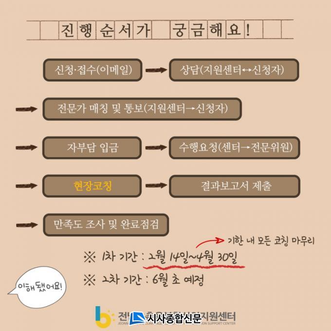 Àü³²6Â÷¼¾ÅÍ¿¡¼ ÁÖ°üÇϰí ÀÖ´Â ÇöÀåÄÚĪ »ç¾÷Àº ¡â°æ¿µ(¸¶ÄÉÆÃ/µðÀÚÀÎ/À繫/¼öÃâ µî) ¡â±â¼ú(Á¦Ç°°³¹ß/°øÀå½Å?ÁõÃà/ǰÁú°ü¸® µî) ºÐ¾ß»Ó¸¸ ¾Æ´Ï¶ó ½ÅûÀÎÀÌ ¿øÇÏ´Â ÄÚĪ ºÐ¾ß·Î ½Åû ¹× ¸ÅĪÀ» ÇÒ ¼ö ÀÖÀ¸¸ç, ¡â1À¯Çü(ÀÏ¹Ý ´Ü±âÄÚĪ) ¡â2À¯Çü(Á¦Ç°ÄÁ¼³ÆÃ ¹× µðÀÚÀÎ) ¡â3À¯Çü(Àå±â º¸À°¸Å´ÏÀú)·Î ±¸ºÐµÇ¾î Çʿ伺¿¡ µû¶ó ³ª´©¾î ½Åûµµ °¡´ÉÇÏ´Ù.