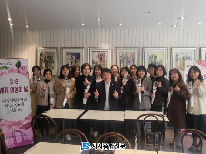 ÀÌÁ¤¼± ±³À°°¨Àº À̳¯ Ãâ±ÙÇÏ´Â Á÷¿øµéÀ» ¸ÂÀÌÇÏ¸ç ¿©¼º Á÷¿øµé¿¡°Ô´Â »§°ú Àå¹Ì²ÉÀ», ³²¼º Á÷¿øµé¿¡°Ô´Â »§À» Àü´ÞÇϸç Á÷¿øµéÀ» °Ý·ÁÇß´Ù. ¶Ç ¿ÀÂù¿¡´Â º»Ã» °¢ ºÎ¼ ´ëÇ¥ ¿©¼º Á÷¿ø 15¸í°ú °£´ãȸ¸¦ °®°í ´Ù¾çÇÑ ÀǰßÀ» ûÃëÇÏ¸é¼ ¶æ±íÀº ¡®¼¼°è ¿©¼ºÀÇ ³¯¡¯À» º¸³Â´Ù.