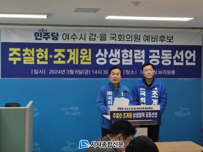 ÁÖöÇö ÀÇ¿ø°ú Á¶°è¿ø ¿¹ºñÈ帴 8ÀÏ ¿ÀÈÄ ¿©¼ö½Ãû ºê¸®Çη뿡¼ °øµ¿±âÀÚȸ°ßÀ» ¿°í, ¡°¿©¼ö½Ã °©¡¤À» Áö¿ª °£ÀÇ °¥µî°ú ºÐ¿ÀÇ Á¤Ä¡¸¦ Á¾½ÄÇϰí, ¿©¼ö½Ã¹ÎÀ» À§ÇÑ ÈÇÕ°ú »ó»ýÇù·ÂÀÇ »õ·Î¿î Á¤Ä¡¸¦ ¿¾î°¡°Ú´Ù¡±°í ¼±¾ðÇß´Ù.