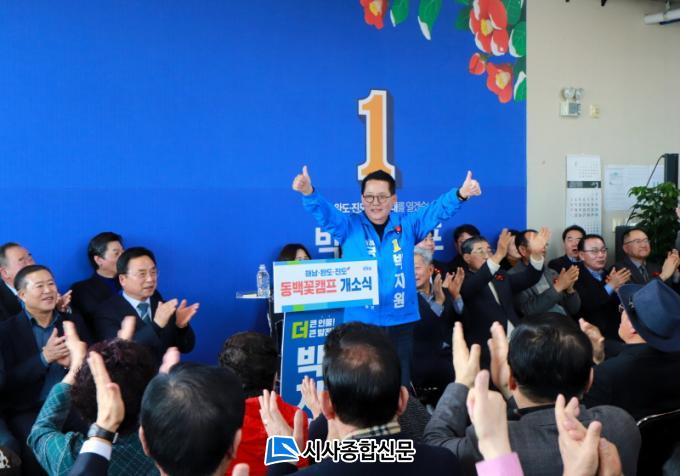 9ÀÏ, ¹Ú Àü ¿øÀåÀº ¿¹ºñÈĺ¸ ¼±°Å»ç¹«¼Ò, µ¿¹é²É Ä·ÇÁ °³¼Ò½ÄÀ» °¡Á³´Ù. À̳¯ °³¼Ò½ÄÀº ÇØ³²±º, ¿Ïµµ±º, Áøµµ±ºÀÇ ´ëÅëÇÕÀ» »ó¡ÇÏ´Â ¼±´ëÀ§ ±¸¼º¿øµé°ú 1õ¿© ¸íÀÇ ÁöÁöÀÚµéÀÌ Âü¿©ÇÑ °¡¿îµ¥, ¼ºÈ²¸®¿¡ ÁøÇàµÆ´Ù.