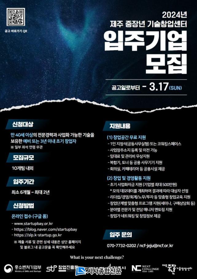 [½Ã»çÁ¾ÇսŹ® = °í¼º¹Î ±âÀÚ] ¼±ÍÆ÷½Ã(½ÃÀå ÀÌÁ¾¿ì)´Â µµ³» ¸¸40¼¼ ÀÌ»óÀÇ ¿¹ºñ ¶Ç´Â Ãʱââ¾÷ÀÚ¸¦ ´ë»óÀ¸·Î 2024³â Á¦ÁÖ ÁßÀå³â ±â¼úâ¾÷¼¾ÅÍ¿¡ ÀÔÁÖÇÒ ±â¾÷À» ¿À´Â 3¿ù 17ÀϱîÁö ¸ðÁýÇÑ´Ù°í ¹àÇû´Ù.
