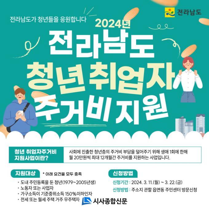 Áö¿ø ´ë»óÀº ¹«ÁÖÅÃÀڷμ ½ÅûÀÏ ÇöÀç Àü³²¿¡ ÁÖ¼Ò¸¦ µÎ°í Àü¼¼ 5õ¸¸ ¿ø ÀÌ»ó ¶Ç´Â ¿ù¼¼ 60¸¸ ¿ø ÀÌÇÏÀÇ ÁÖÅÃÀ» ÀÓÂ÷ÇØ °ÅÁÖ ÁßÀÎ ÀÏÇϴ û³â(1979~2005³â Ãâ»ýÀÚ)ÀÌ´Ù. Àü³²¿¡ ¼ÒÀçÇÑ È¸»ç, »ç¾÷Àå¿¡¼ °í¿ë ÇüÅ¿¡ °ü°è¾øÀÌ ÃÖ±Ù 6°³¿ù µ¿¾È 3°³¿ù ÀÌ»ó ±Ù¹«Çϰí Àְųª, »ç¾÷ü¸¦ ¿î¿µÇÏ´Â ÁßÀ§¼Òµæ 150% ÀÌÇÏÀÇ Ã»³âÀÌ¸é ´©±¸³ª ½ÅûÇÒ ¼ö ÀÖ´Ù.