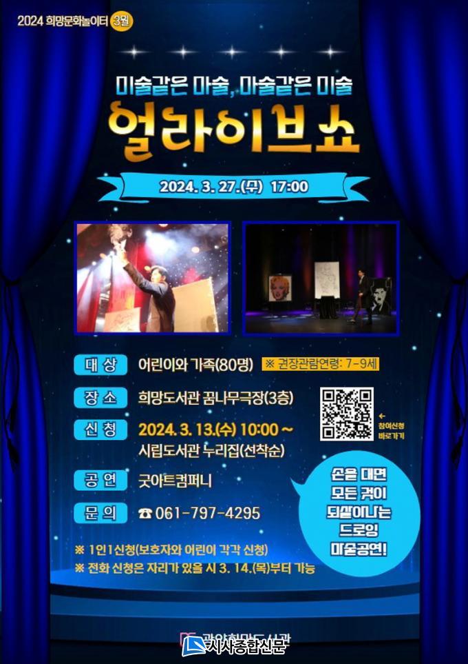 ¡®¾ó¶óÀ̺ê¼î¡¯ °ø¿¬Àº ¾î¸°ÀÌ¿Í °¡Á· ´©±¸³ª °ü¶÷ÇÒ ¼ö ÀÖÀ¸¸ç, Âü¿©¸¦ Èñ¸ÁÇÏ´Â »ç¶÷Àº ¿À´Â 13ÀÏ ¿ÀÀü 10½ÃºÎÅÍ ±¤¾ç½Ã¸³µµ¼°ü ´©¸®Áý(https://lib.gwangyang.go.kr)¿¡¼ ½ÅûÇÒ ¼ö ÀÖ´Ù.