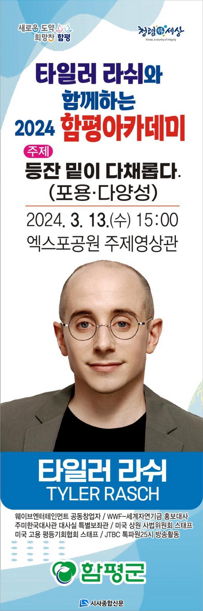 À̹ø °¿¬È¸´Â ¿À´Â 3¿ù 13ÀÏ ¿ÀÈÄ 3½Ã¿¡ ÇÔÆò ¿¢½ºÆ÷°ø¿ø ÁÖÁ¦¿µ»ó°ü¿¡¼ ¿¸®¸ç, ŸÀÏ·¯ ¶ó½¬´Â ¡®µîÀÜ ¹ØÀÌ ´Ùä·Ó´Ù¡¯¶ó´Â ÁÖÁ¦·Î ´Ù¾ç¼º°ú Æ÷¿ëÀÇ Á߿伺¿¡ ´ëÇØ °¿¬ÇÒ ¿¹Á¤ÀÌ´Ù.